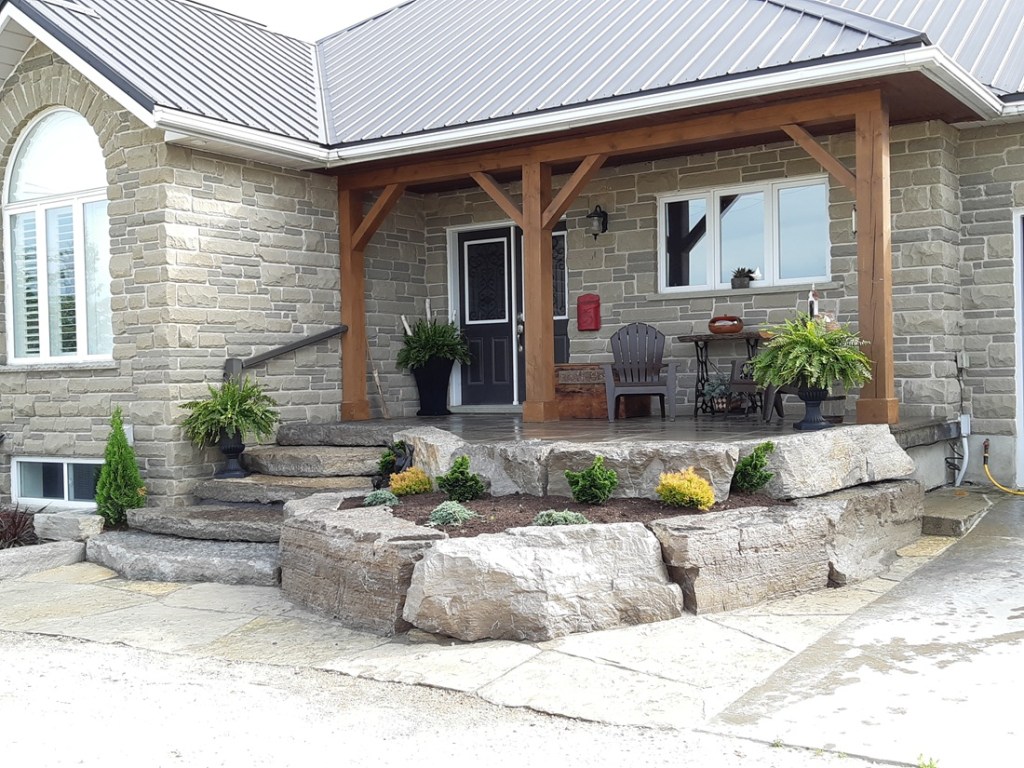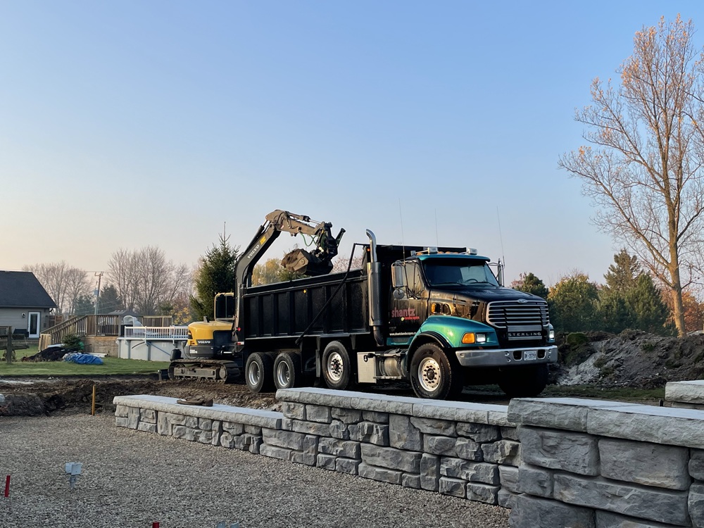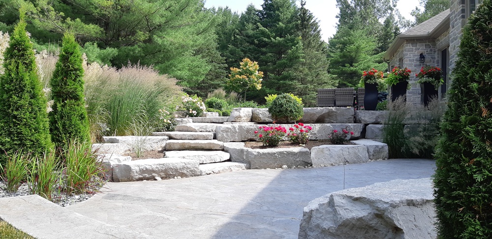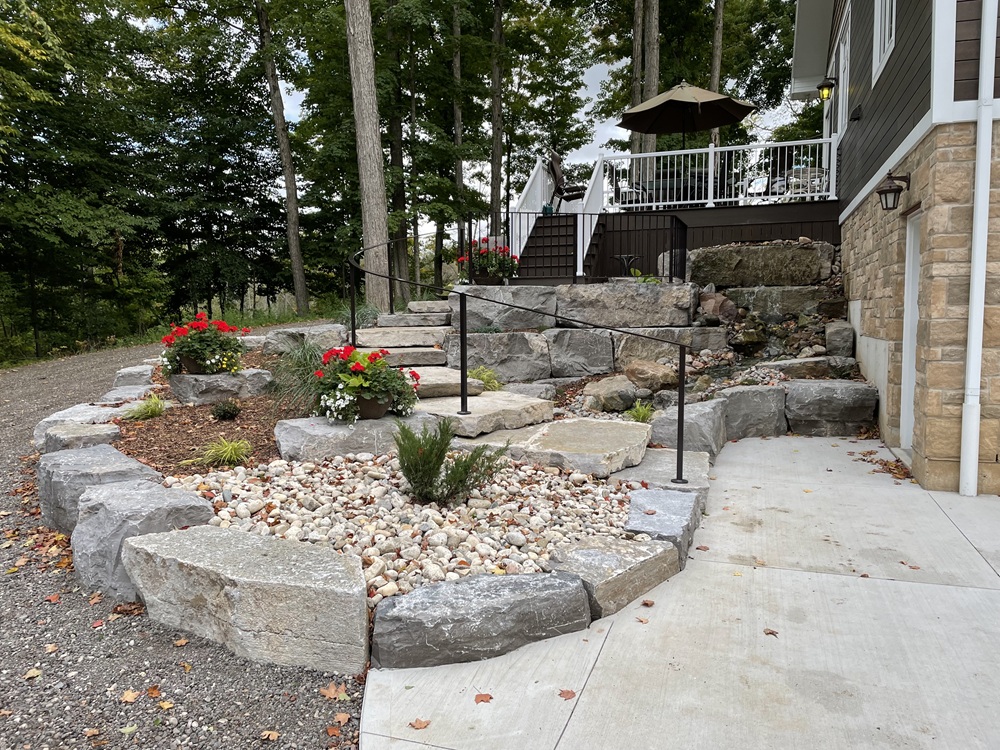 Shantz Landscapes designs and builds landscapes. Our specialties include armour stone and large precast concrete block retaining walls, small interlock installs, and prep for concrete.